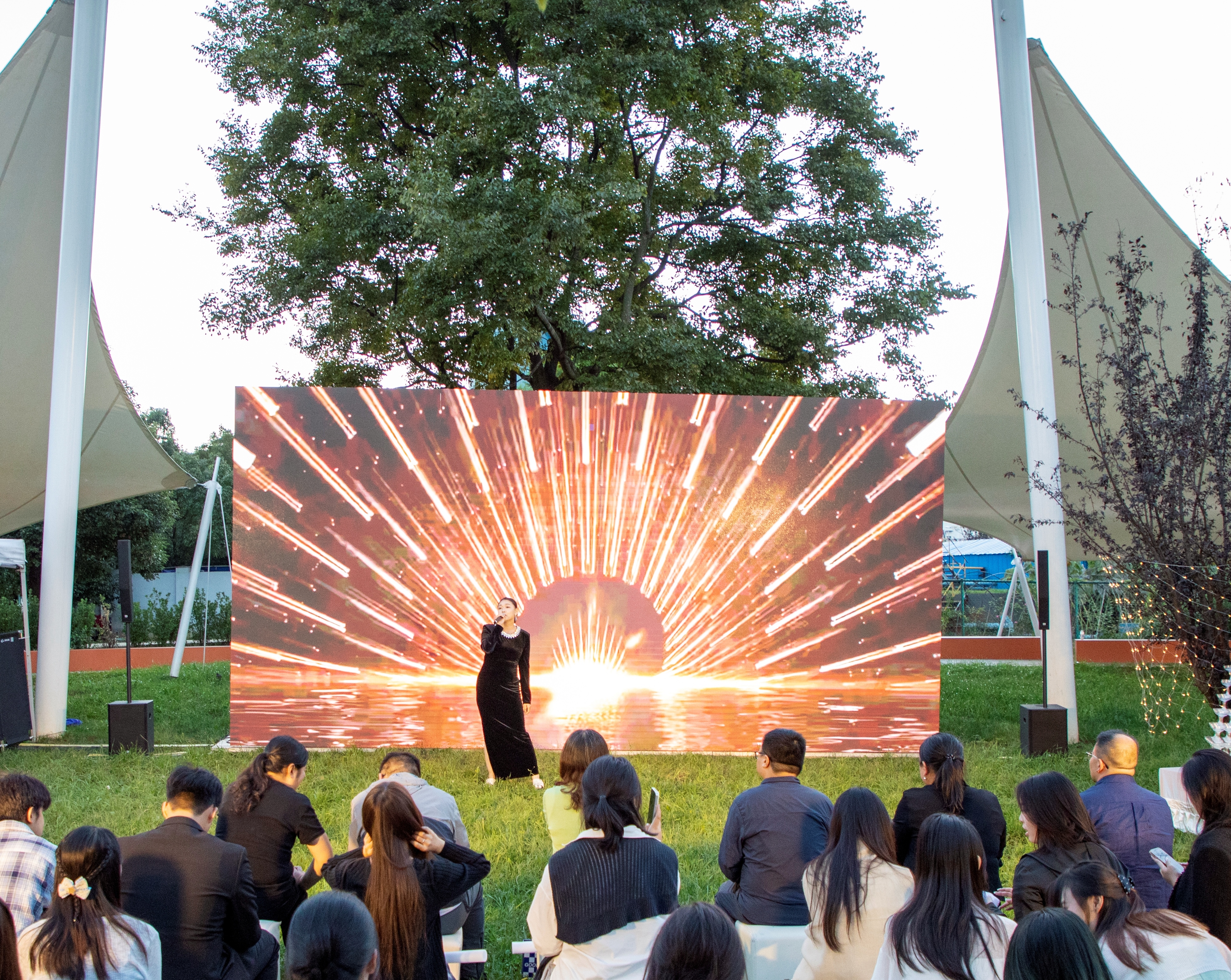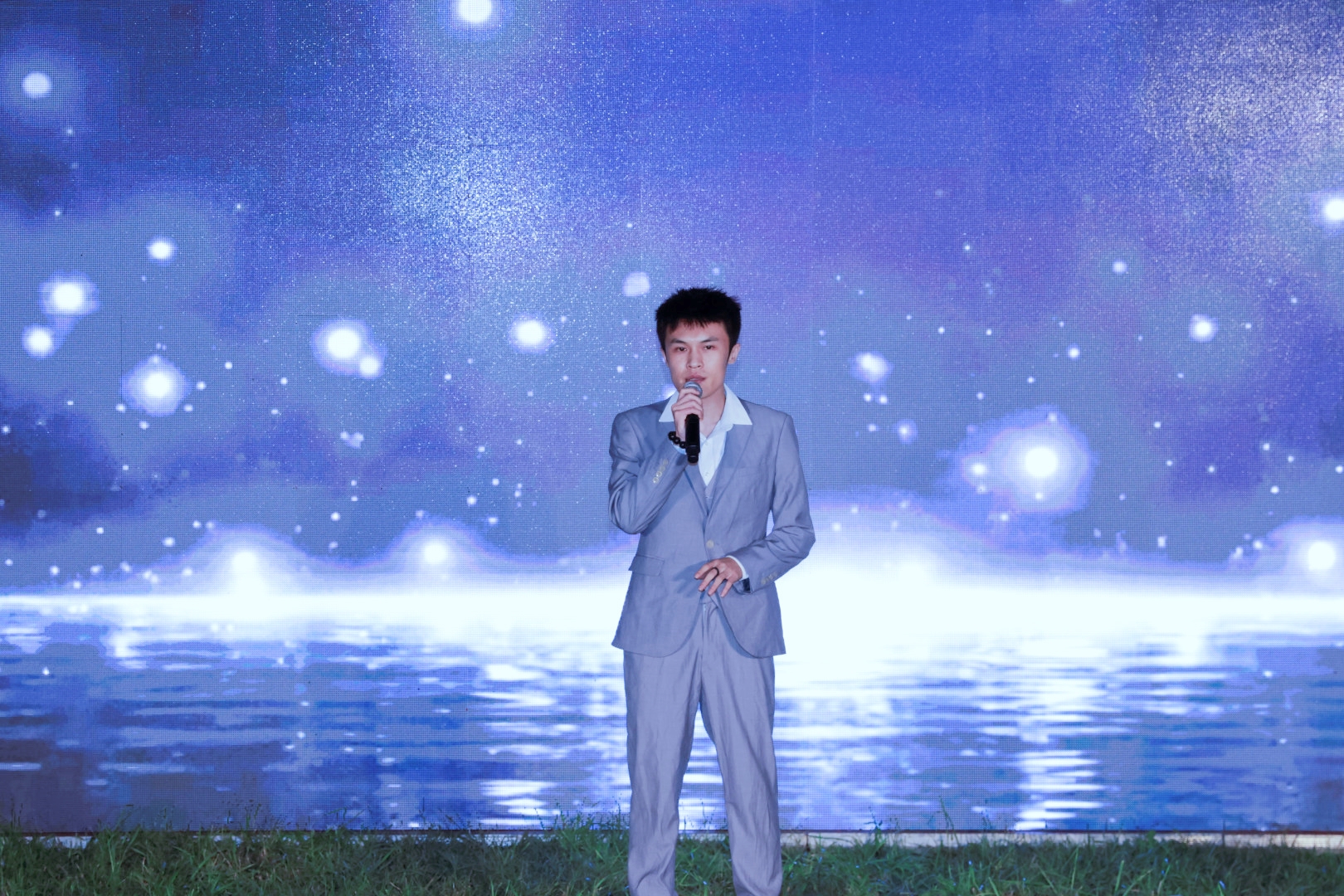 学校教师代表李兴晟深情演唱《夜半小夜曲》,温柔嗓音搭配细腻情感,缓缓诉说着歌曲故事,让现场观众沉浸在治愈的音乐氛围中。