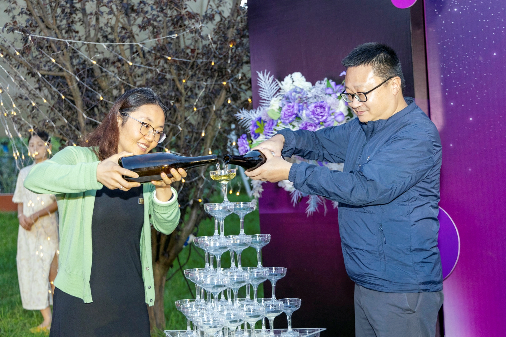学校领导将象征希望与传承的“特调饮料”注入杯中。