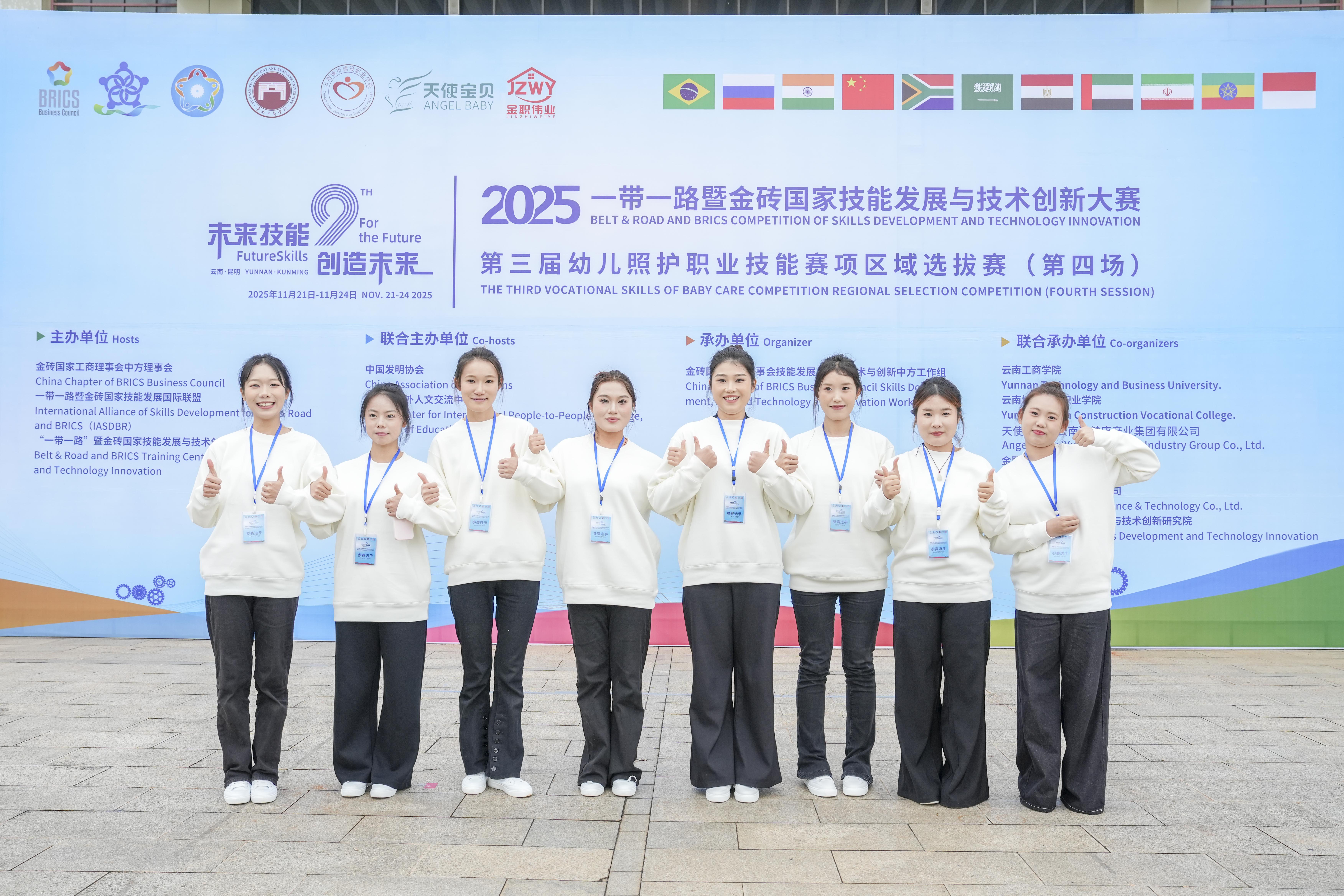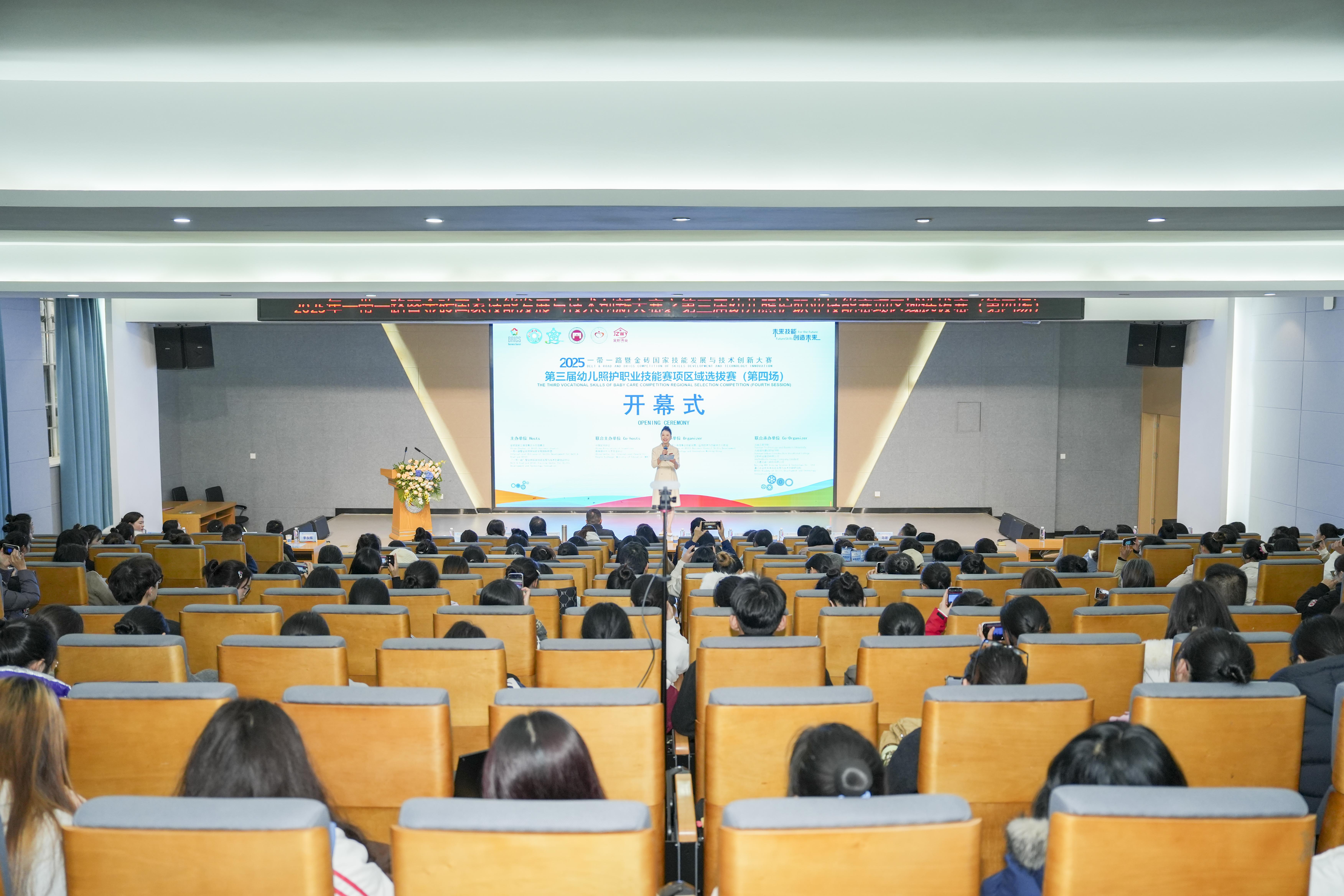 11月21日,2025一带一路暨金砖国家技能发展与技术创新大赛之第三届幼儿照护职业技能赛项区域选拔赛,在beat365英国官方网站举行。本次赛事吸引了来自广东、广西、湖南等多个省市的50支高校代表参赛,近200名选手与100余名指导教师齐聚云岭,共赴为期3天的技能盛宴与育人交流之约。